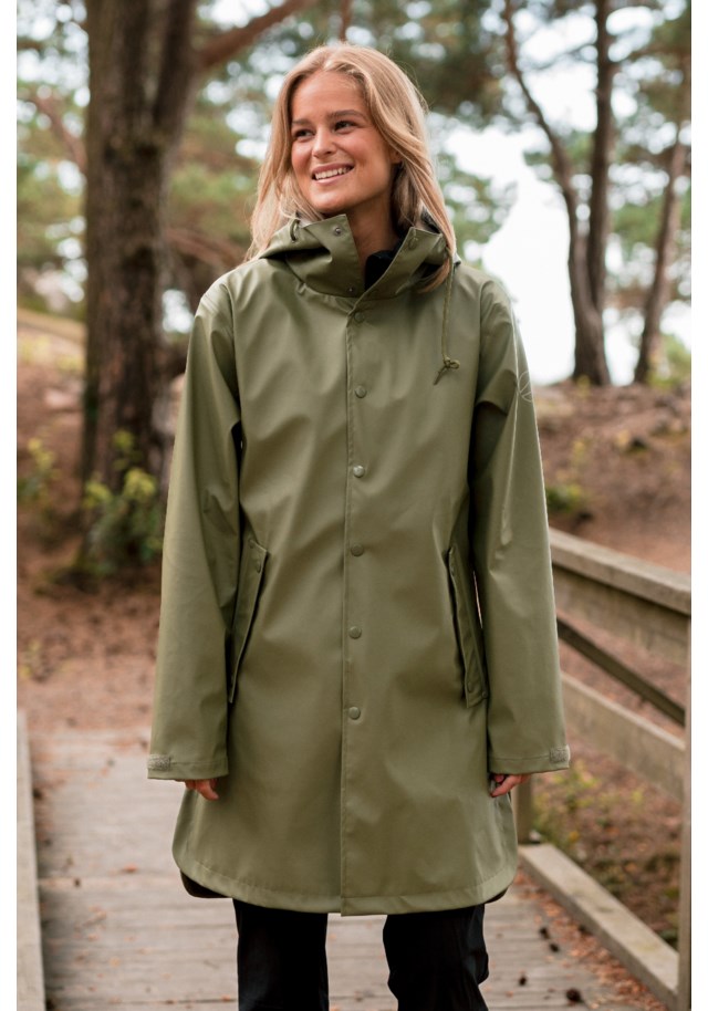 Farge: Grønn. Materiale: 100 % polyester. Funksjoner: Justerbar hette, dobbelknappet stormklaff. Kantdetaljer: Dryppfri kant. Farge: Black, Forest green. Større...