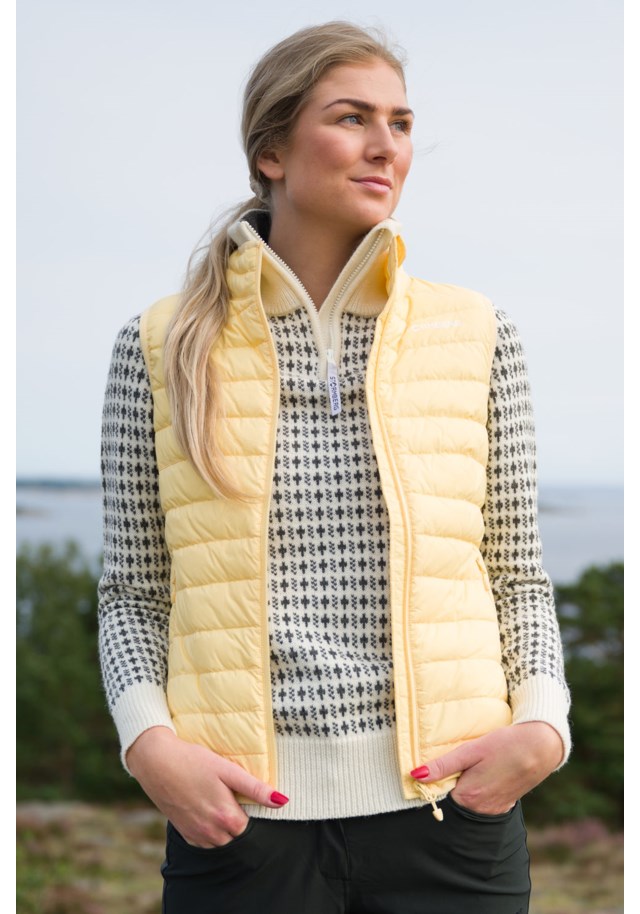 Type: Dunvest. Passform: Dame. Funksjon: Isolerende, lettere boblevest. Bruksområde: Mellomplagg eller ytterplagg ved kjøligere vær. Farge: Farge. Størrelse: L,...