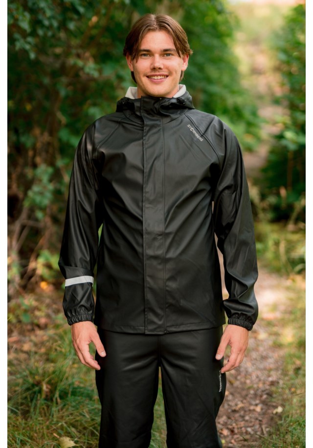 Materiale: Slitesterkt materiale. Design: Regnjakke til herre. Funksjoner: Tydelige og synlige refleksfelter. Ventilasjon: Ventilasjonsåpninger under armene. Fa...