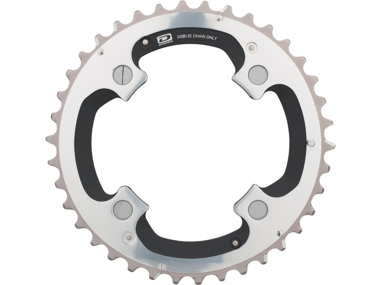 Farge: Sølv; Antall tenner: 38T; Materiale: aluminium; Boltsirkel diameter: 104 mm.
